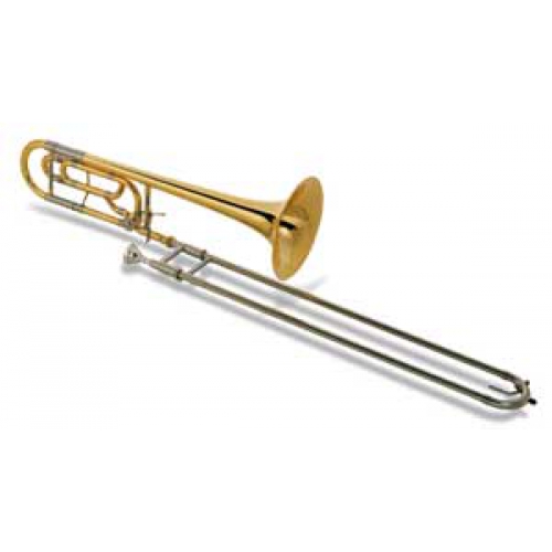 Тромбон тенор Bb с квартвентилем, растр. 13,34 мм, колокол 203 мм, F-механизм, имеющий особенности прямого тягового F-ротора, нейлоновые роторные гнезда, кулиса мельхиор, корпус медь, обожженное эпоксидом лаковое покрытие корпуса, деревянный кейс Deluxe